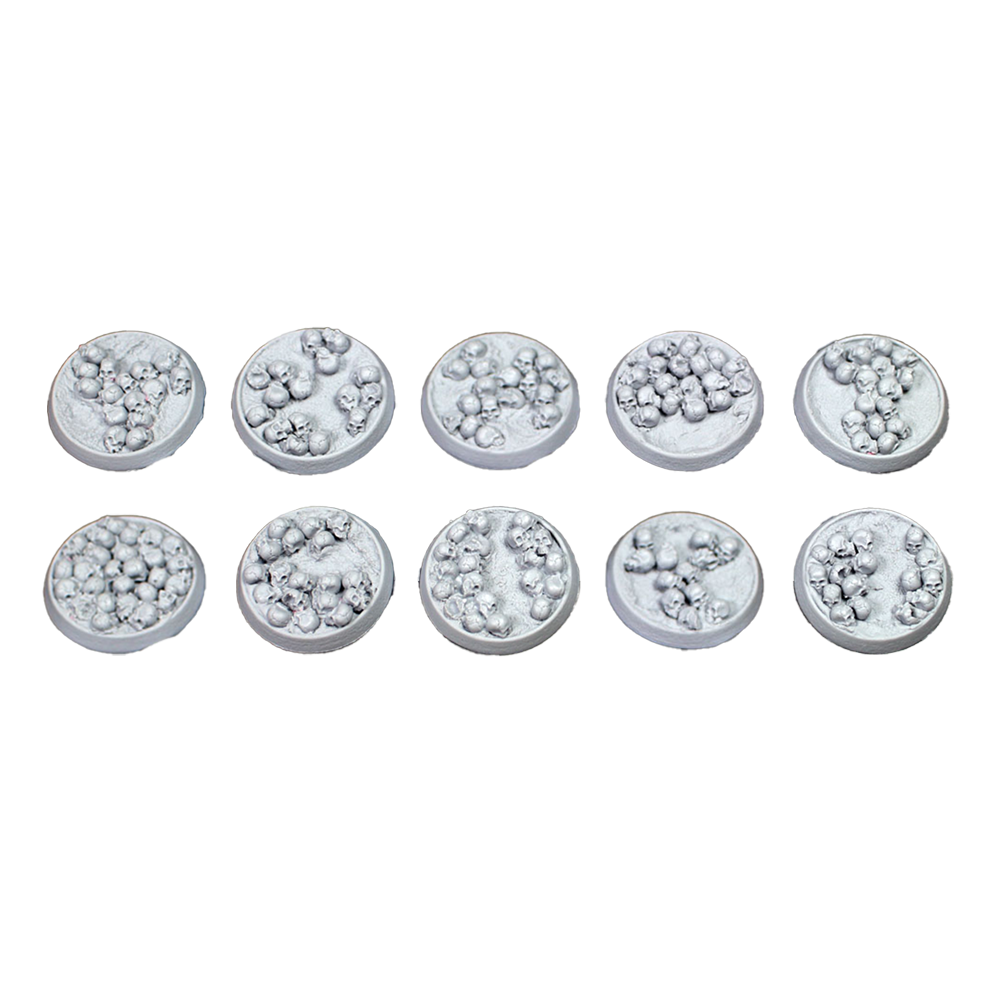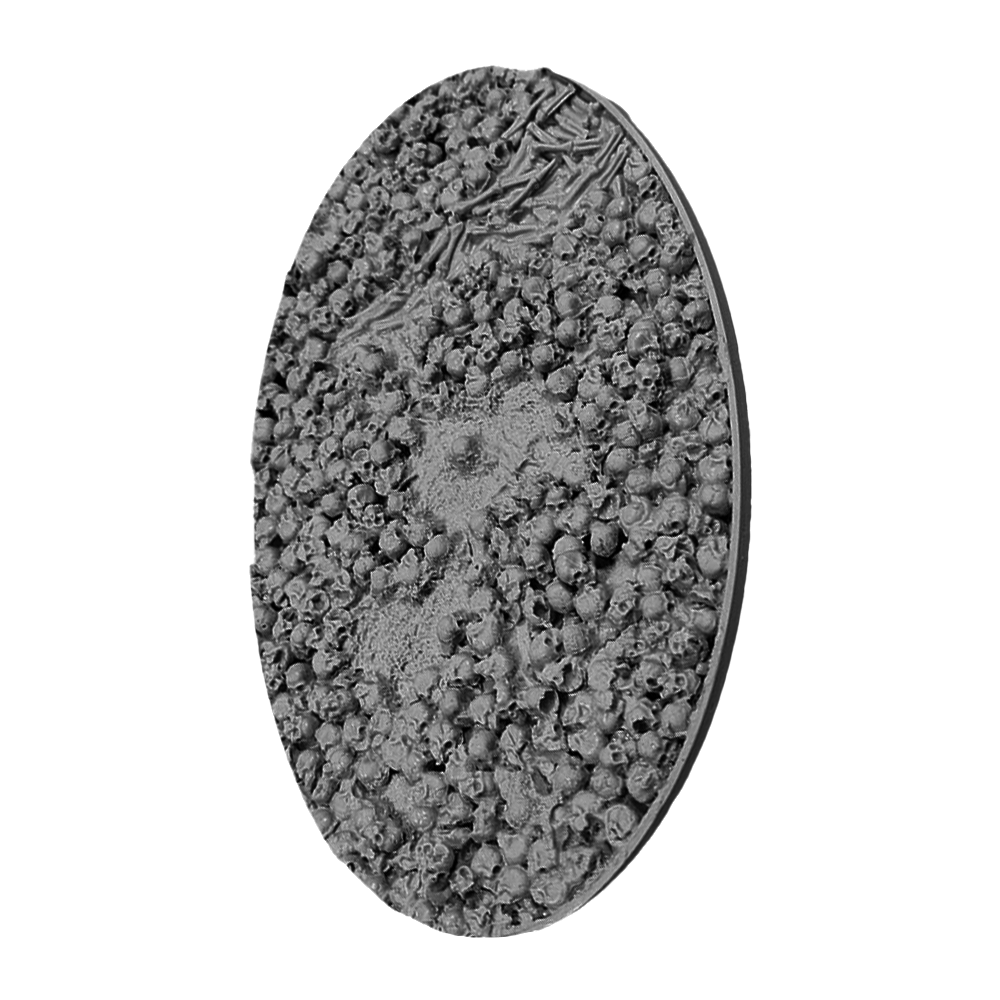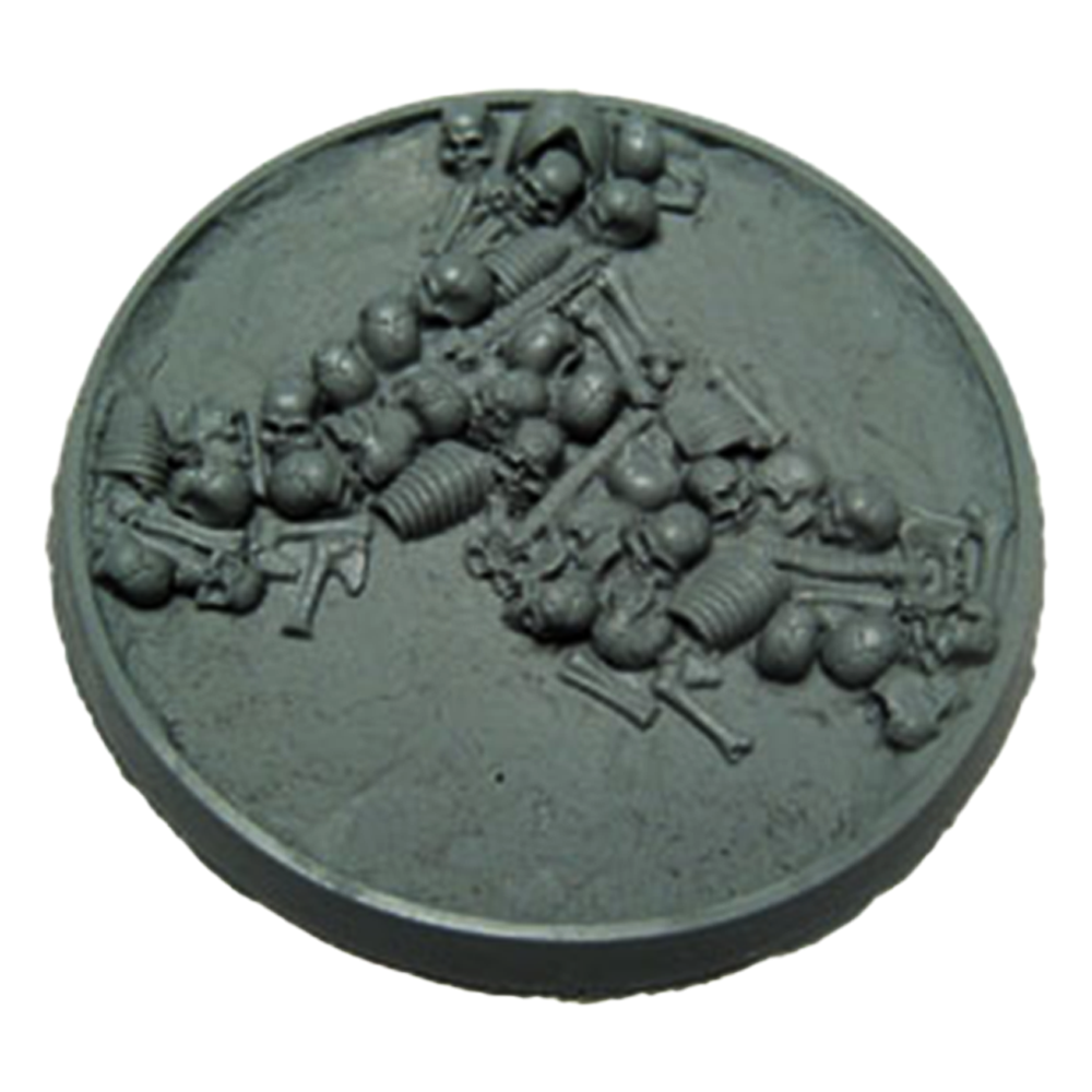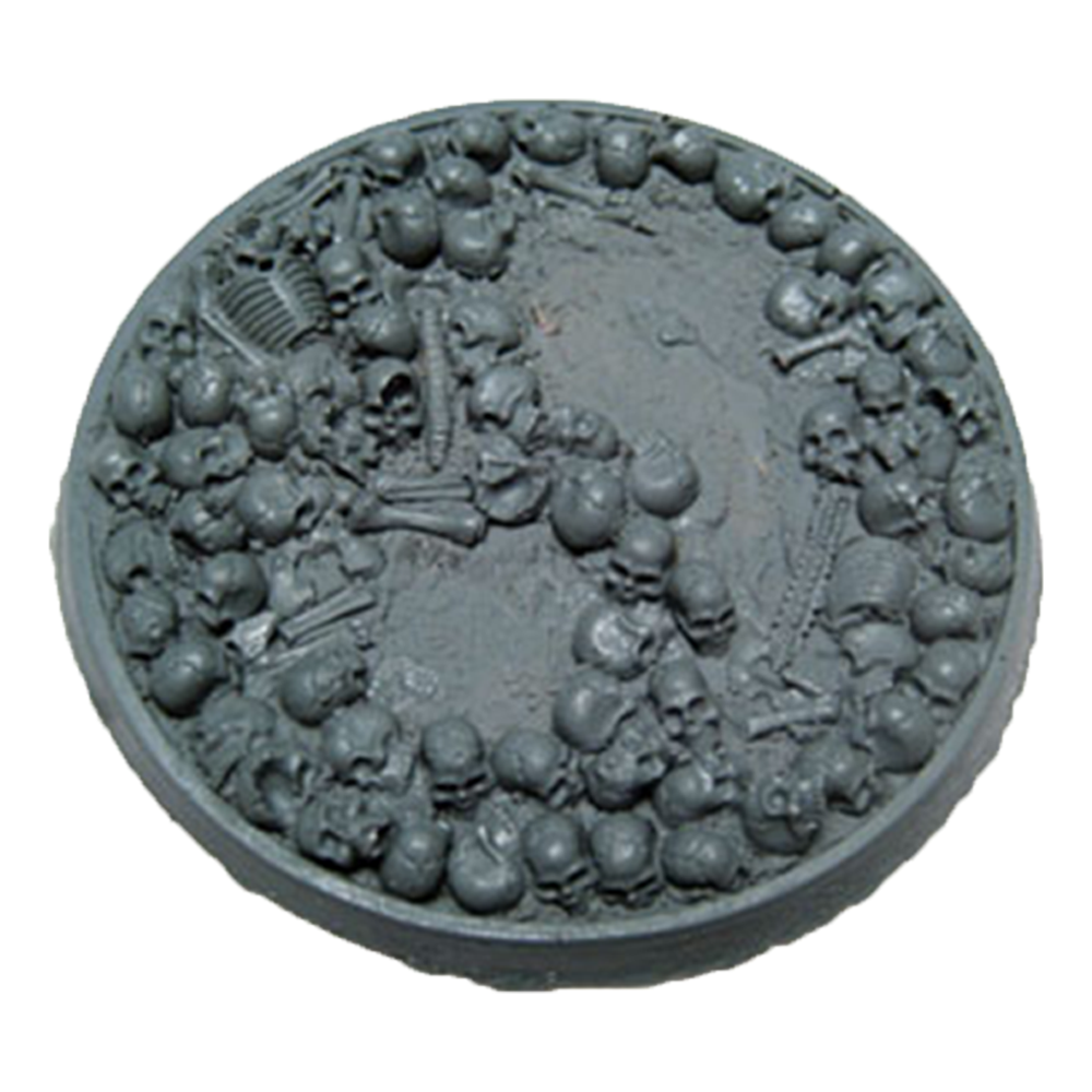 Perfect for all Warhammer 40K Chaos and Age of Sigmar Chaos & Death armies. Resin bases in the Bone Fields theme featuring an ash-textured ground covered in human bones and a hollow body that allows you to use the base as-is or fill it with the blood recipe of your choice to put your models literally ankle deep in gore!