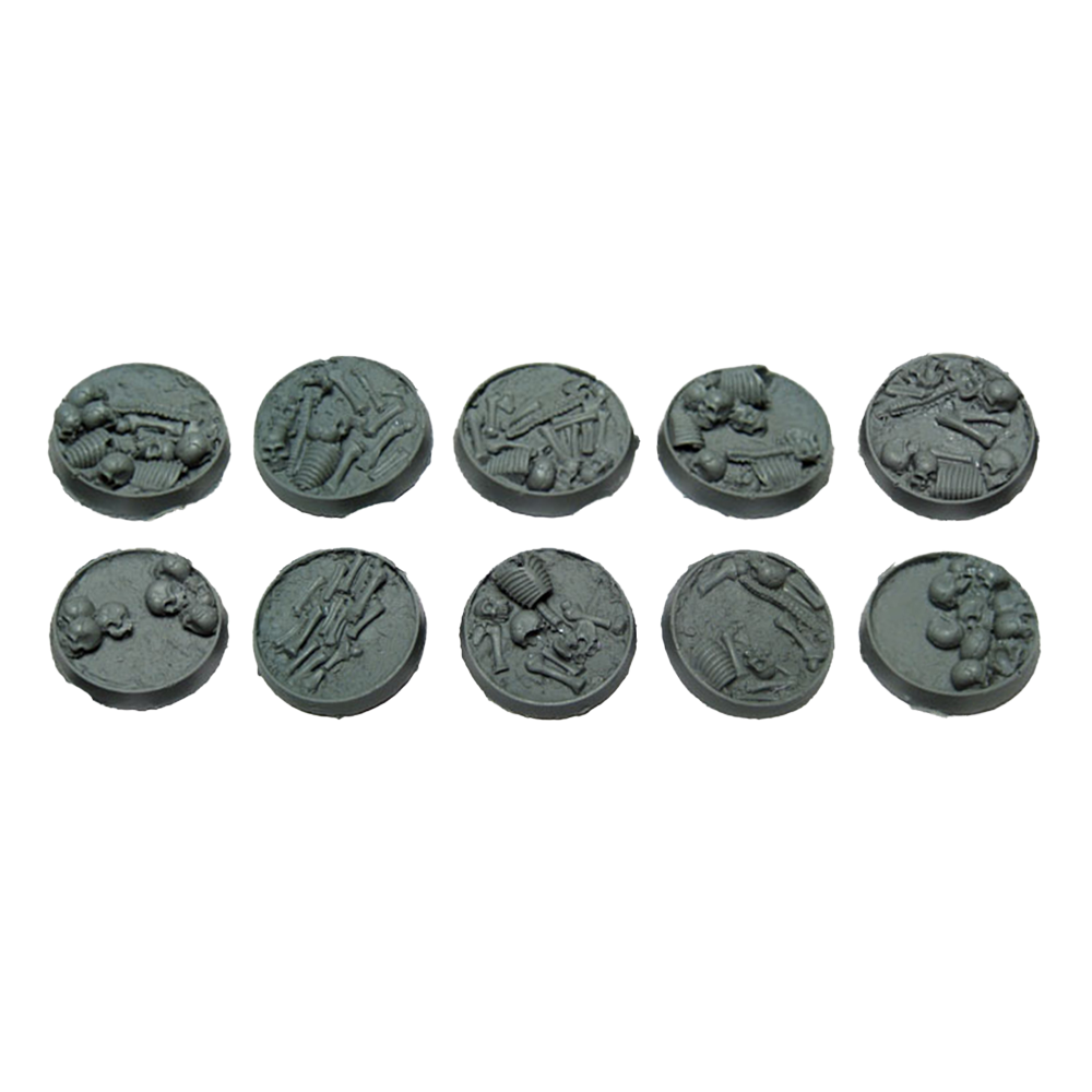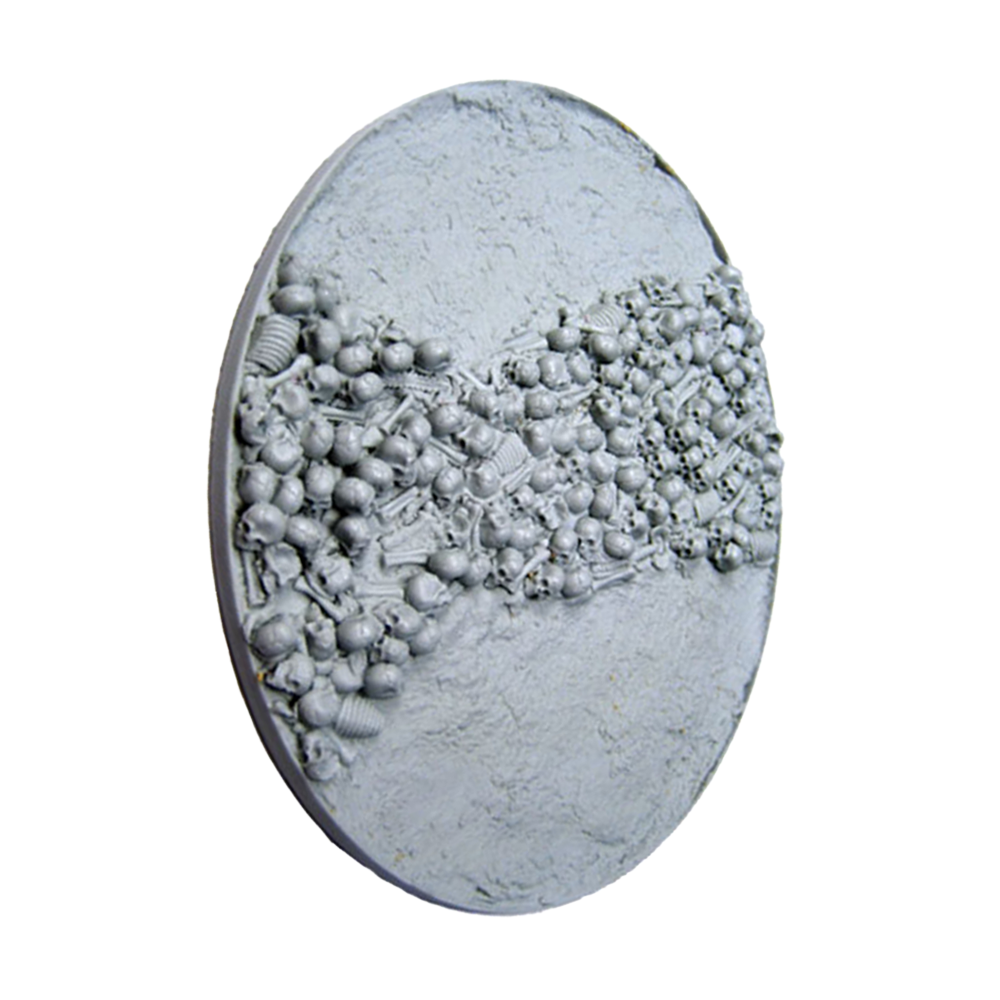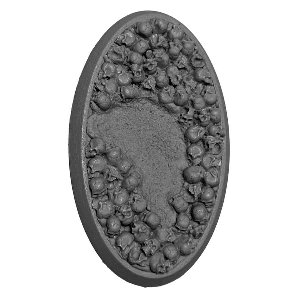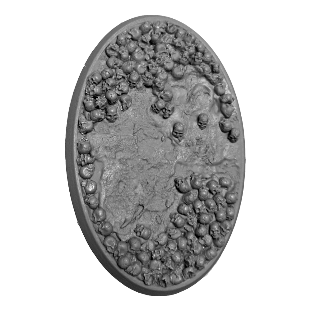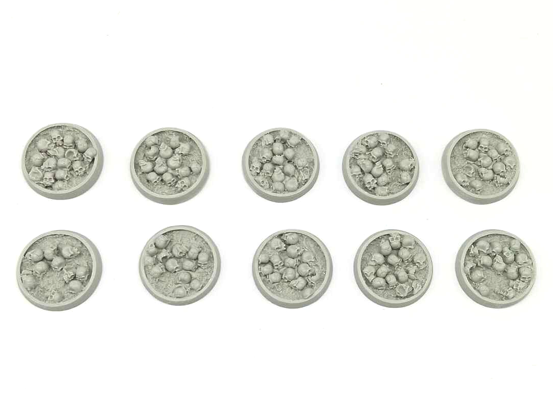 Perfect for all Warhammer 40K Chaos and Age of Sigmar Chaos & Death armies. Resin bases in the Bone Fields theme featuring an ash-textured ground covered in human bones and a hollow body that allows you to use the base as-is or fill it with the blood recipe of your choice to put your models literally ankle deep in gore!