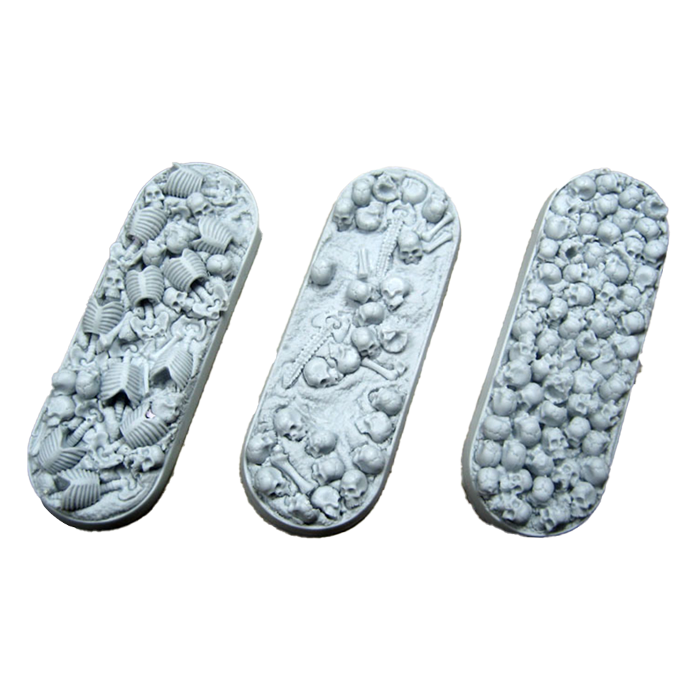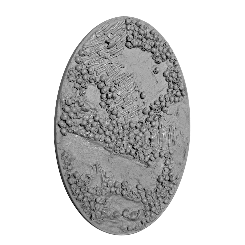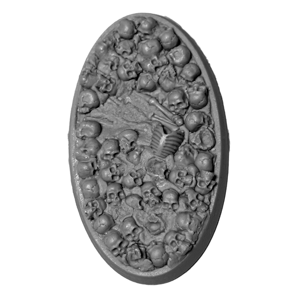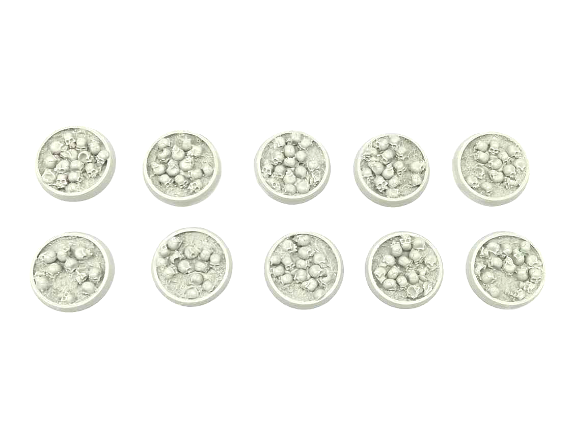 Perfect for all Warhammer 40K Chaos and Age of Sigmar Chaos & Death armies. Resin bases in the Bone Fields theme featuring an ash-textured ground covered in human bones and a hollow body that allows you to use the base as-is or fill it with the blood recipe of your choice to put your models literally ankle deep in gore!