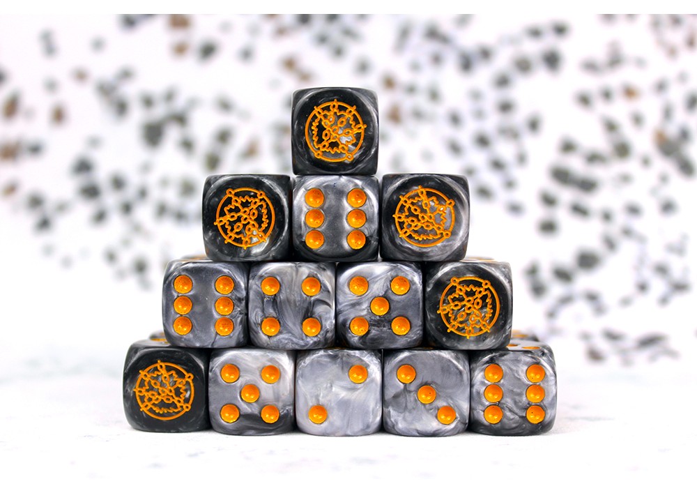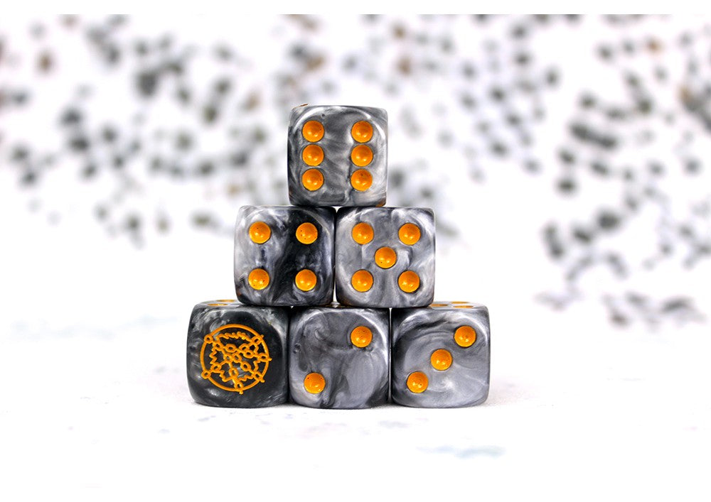 Conquest - Dweghom: Faction Dice on Gray wirl Dice