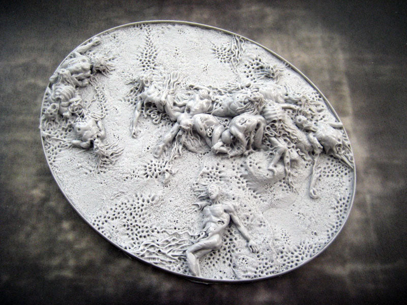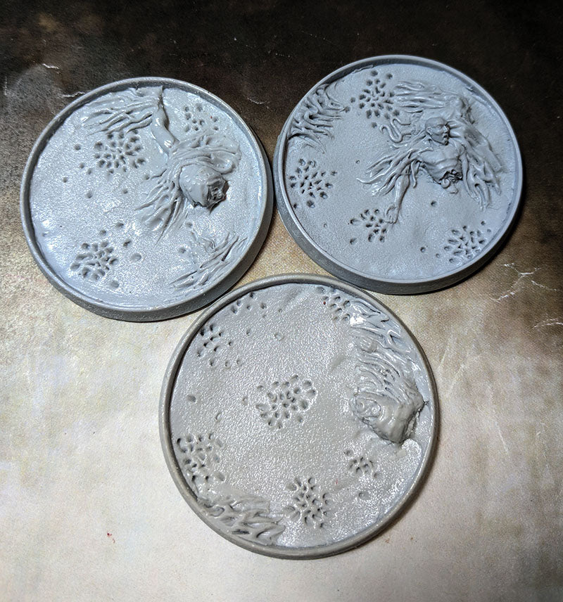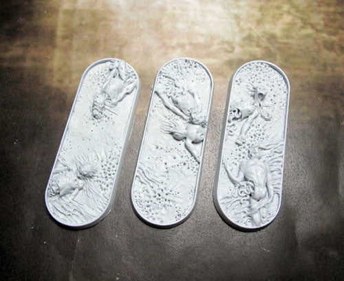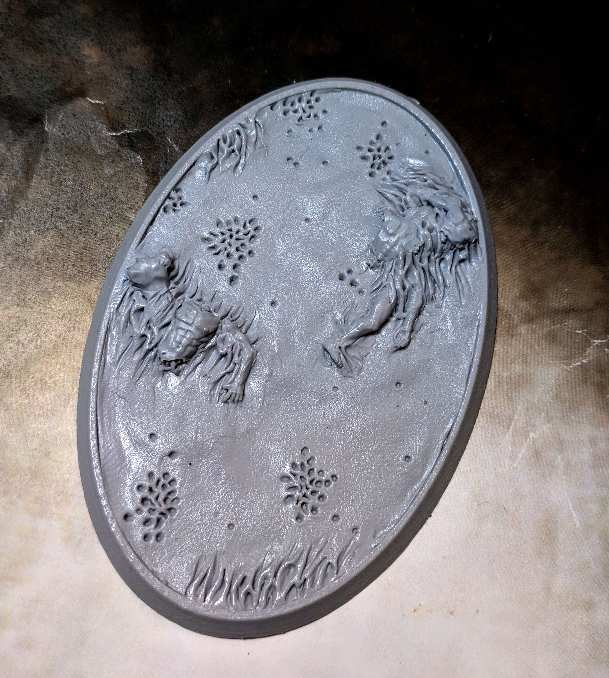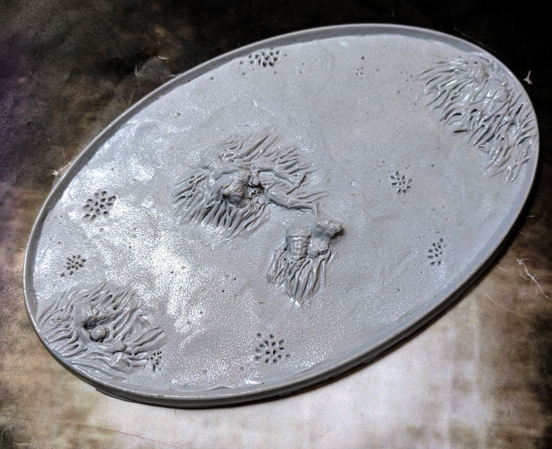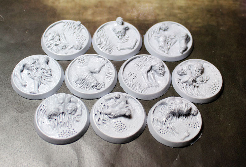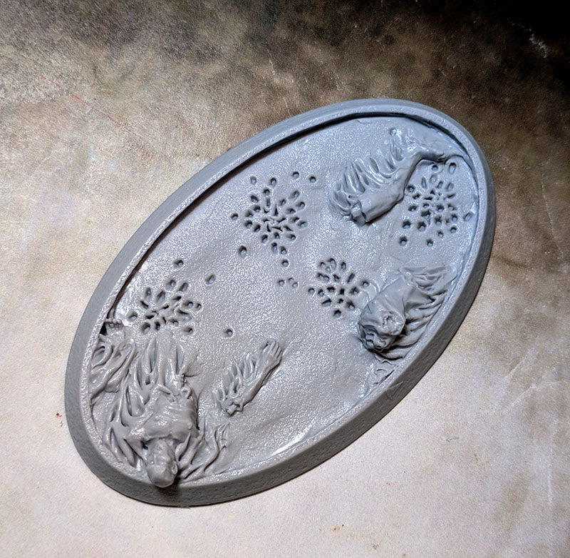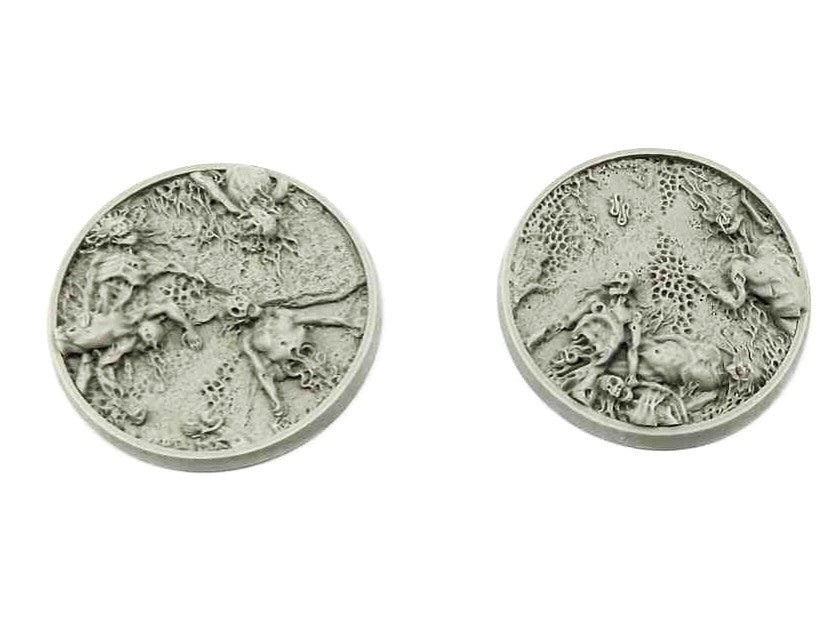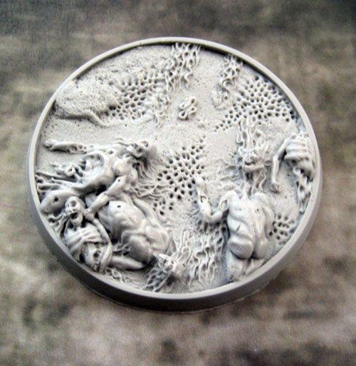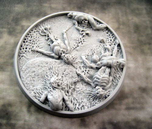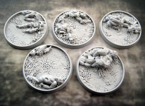 Corpse Fields-themed bases, feature desiccated corpses, creeping growth, and a hollow base that allows you to add Realistic Water, or your favorite blood recipe, to put your models ankle-deep in viscera!