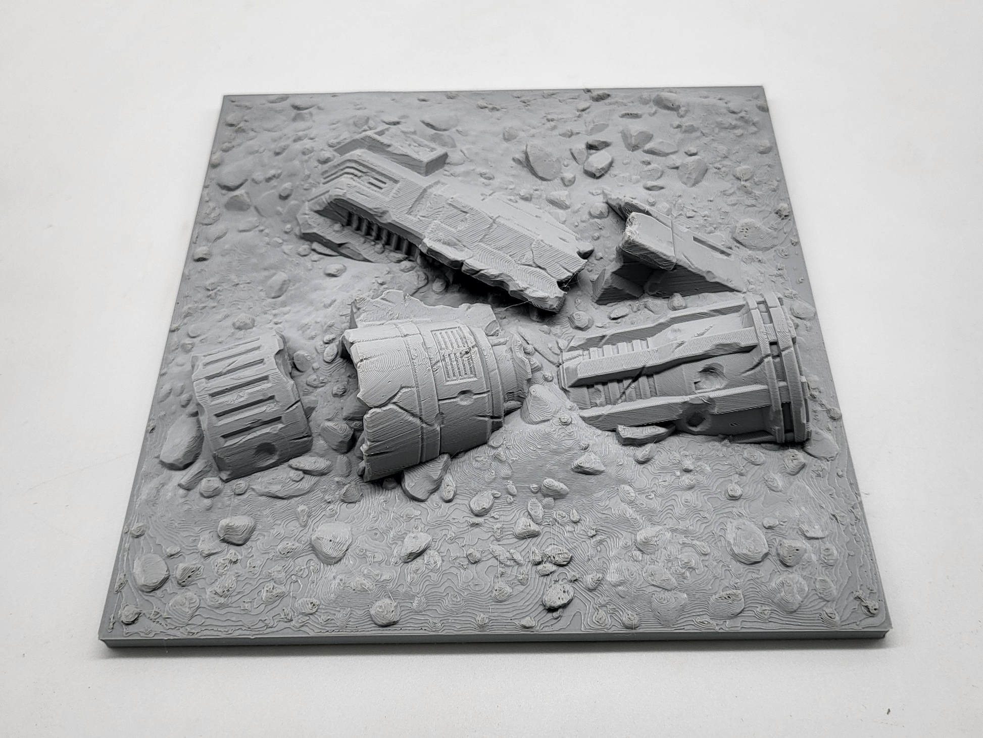 Elrik's Hobbies brings grim industrial warfare to your tabletop with the Trench Zone No Man's Land Crashed Ship 1 Topper from Dark Fantastic Mills. Crafted in durable PLA with rugged detail, this topper allows you to elevate a customized No Man's Land each battle. Add a variety of toppers to create a your unique the battle fields, add objective points, and bring your models to life.