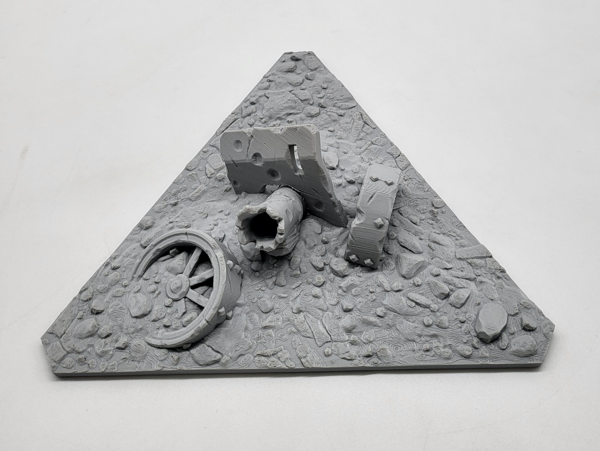 Elrik's Hobbies brings grim industrial warfare to your tabletop with the Trench Zone Destroyed Howizter Bunker Topper from Dark Fantastic Mills. Crafted in durable PLA with rugged detail, this topper allows you to customize each bunker within your trench line. Add a variety of toppers to create a your unique the battle fields, establish objective points, and bring your models to life.