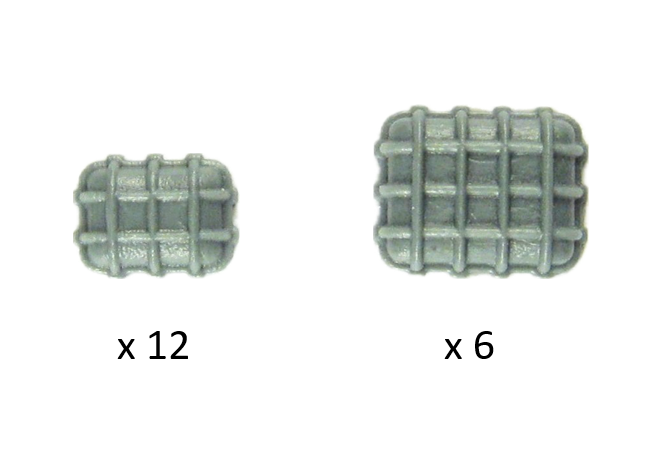 This Rectangular Headlight set comes with twelve (12) small measuring 0.20 inches (5.1mm) by 0.27 inches (6.9mm) and six (6) large measuing 0.29 inches (7.4mm) by 0.34 inches (8.6mm).