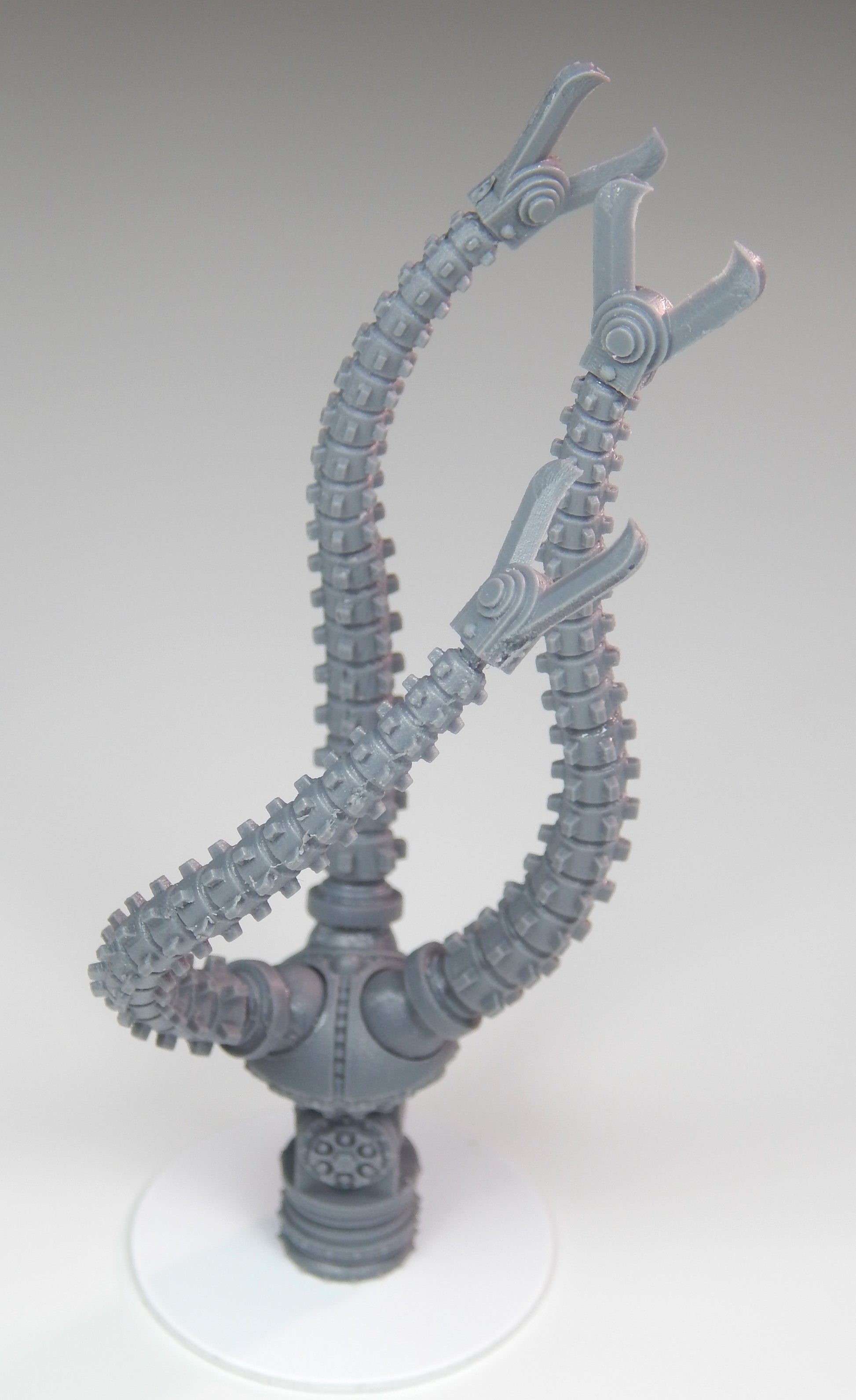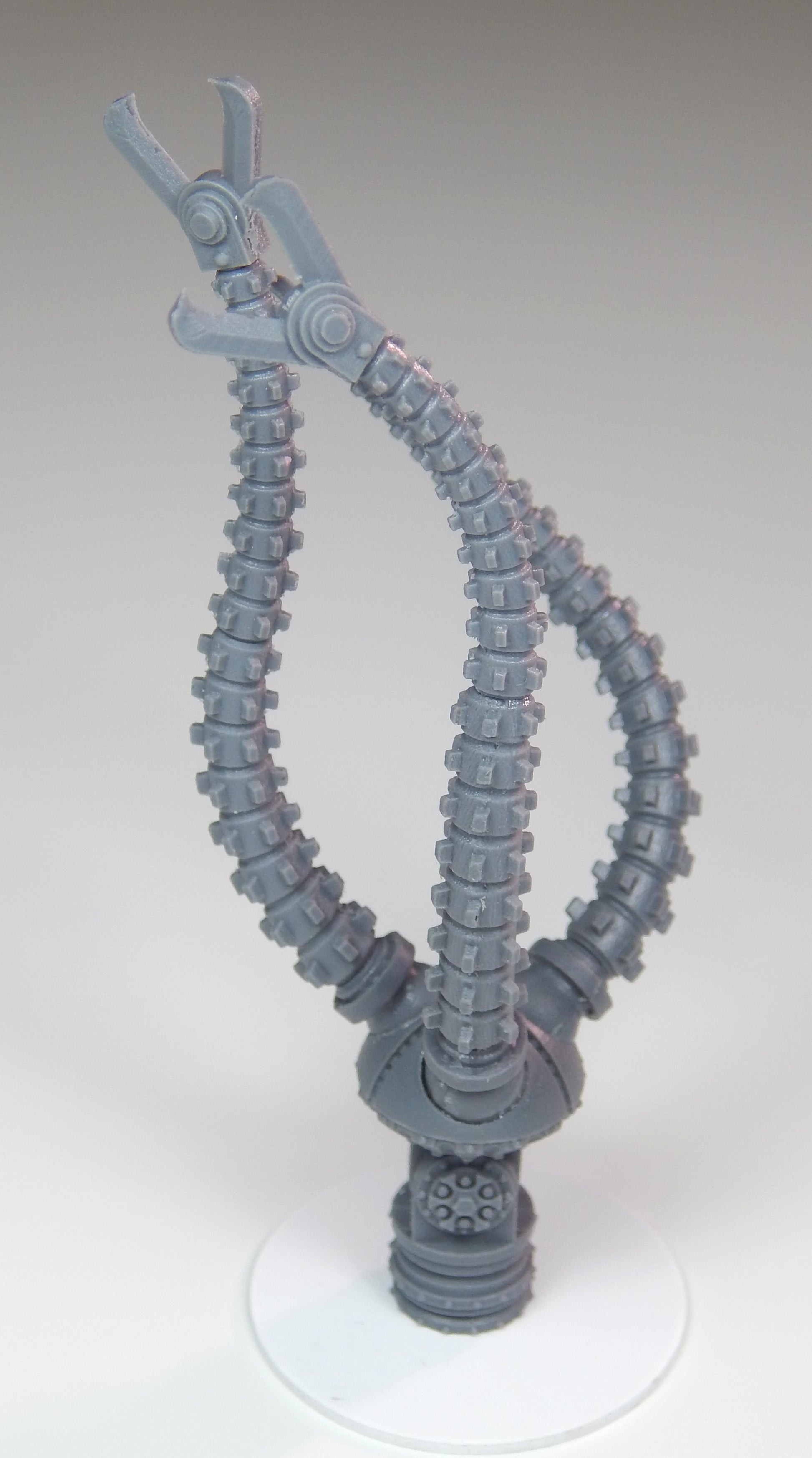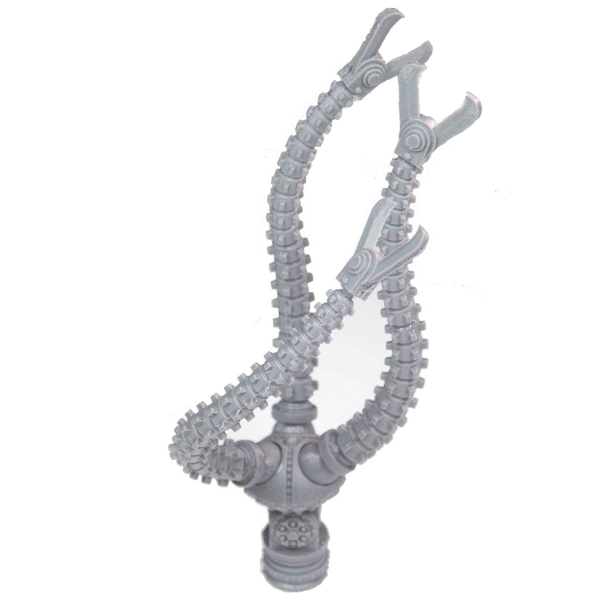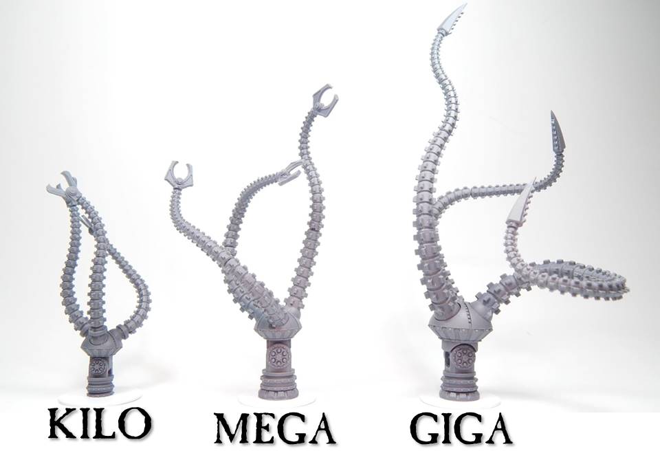 The Mechanoid Kilo Slasher is a multi-piece kit that is compatible with the Games Workshop Imperial Knight Armiger. The kit is articulated and can be posed multiple different ways with a magnetic coupling between the weapon and the arm mount. When constructed the assembly is approximately 4 inches (102mm) long.