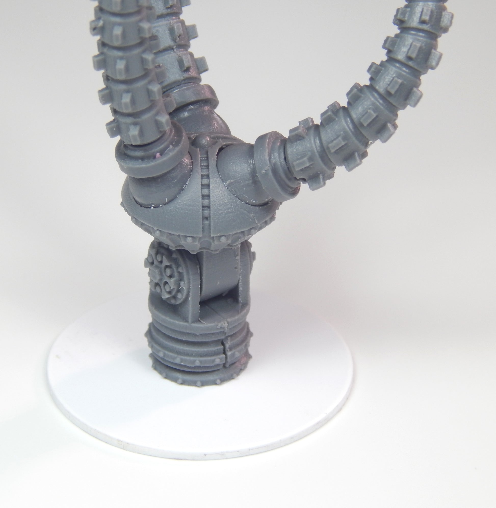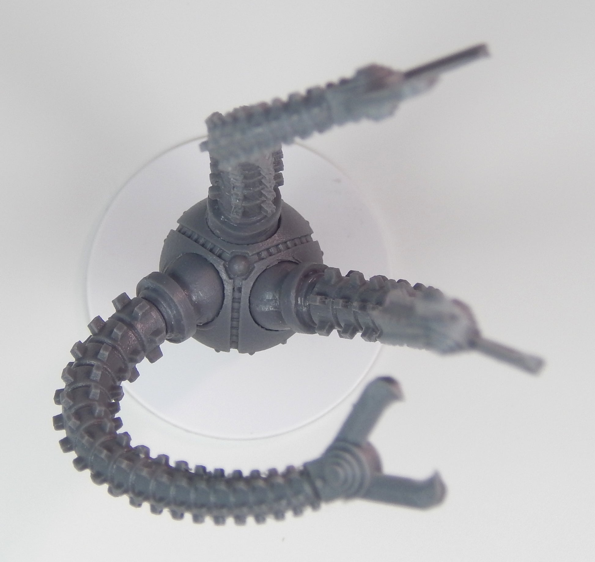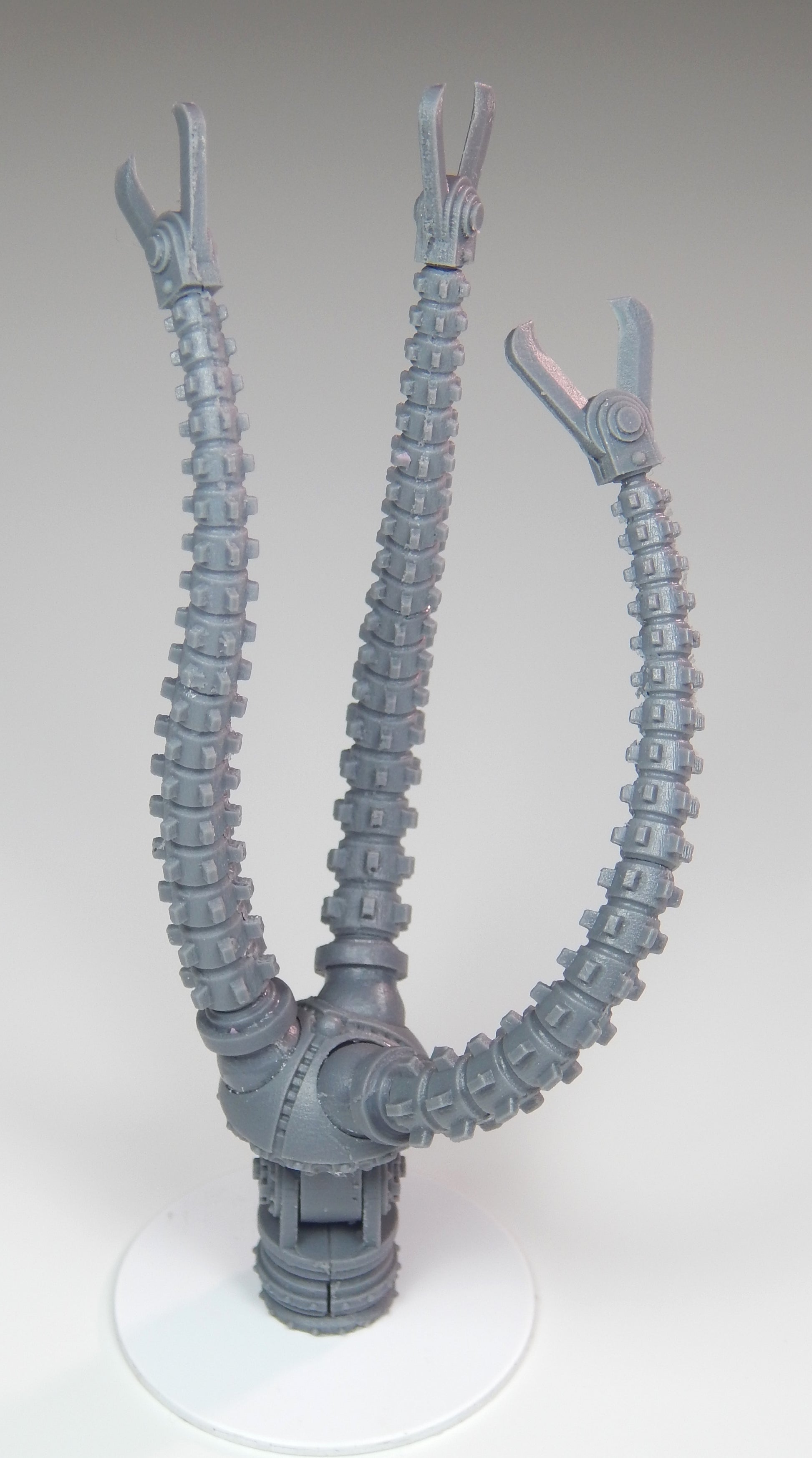 The Mechanoid Kilo Slasher is a multi-piece kit that is compatible with the Games Workshop Imperial Knight Armiger. The kit is articulated and can be posed multiple different ways with a magnetic coupling between the weapon and the arm mount. When constructed the assembly is approximately 4 inches (102mm) long.
