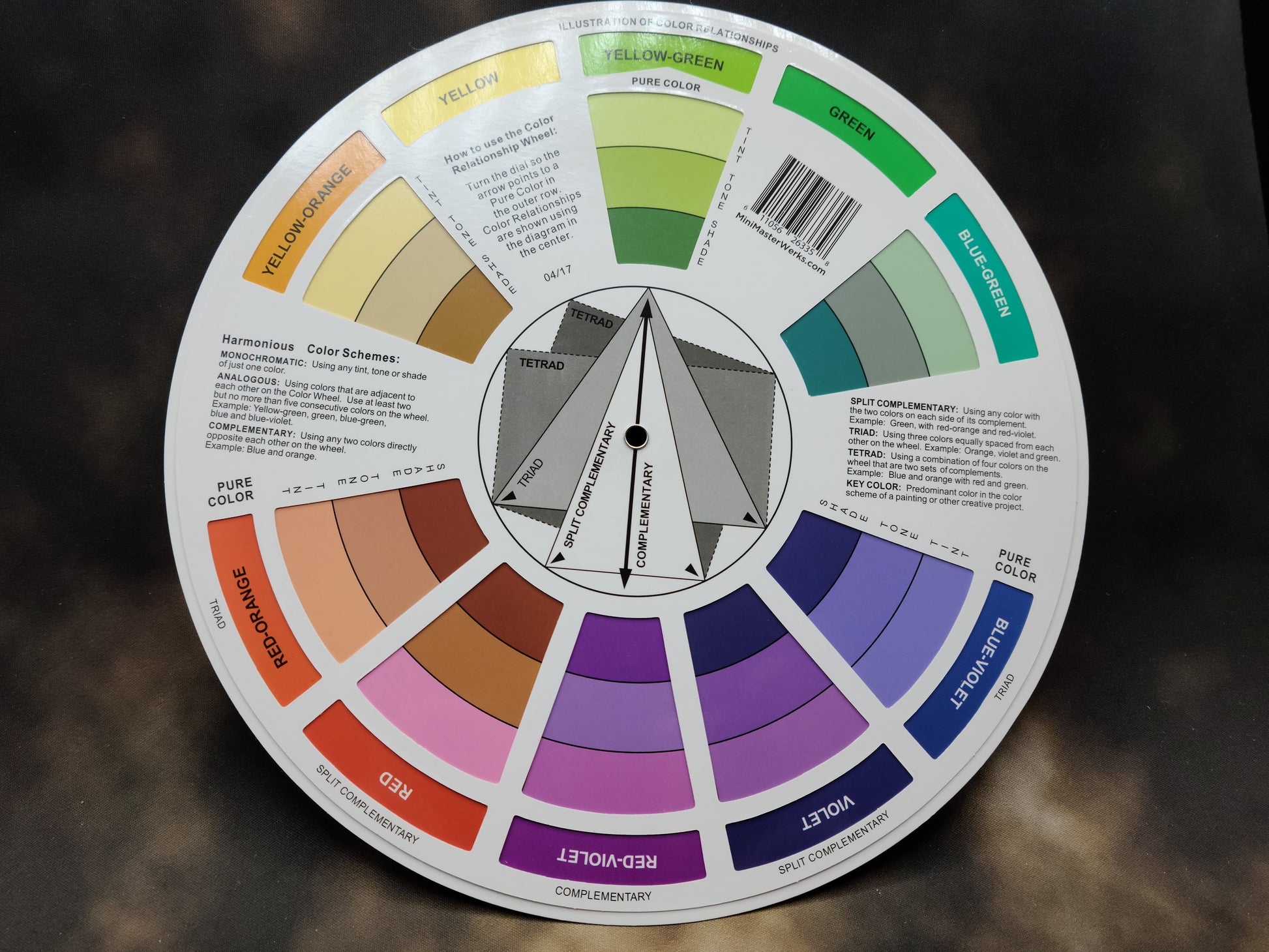 Our color wheel is full size 9.25 inches round and is complete with color definitions.
