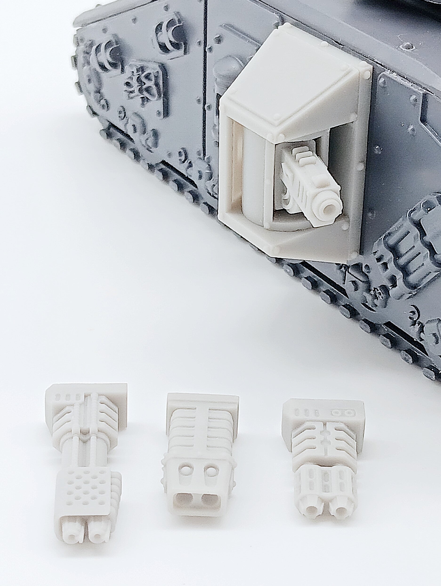 This upgrade set comes with two (2) sponsons and 4 sets of weapon options: